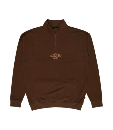 Informazioni trovate: L'articolo EBYFT00164 riguarda il Billabong Core Lord Mock Neck. Specifiche: 80% cotone, 20% poliestere, pile 280g/m2, vestibilità rilassata, mezza zip, tasche laterali, ricamo del logo sul petto. Il colore "Bark" è marrone scuro. Il target di riferimento è lo stile di vita casual del surf.